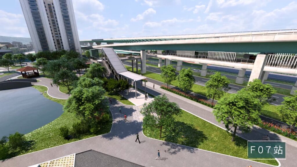 市長侯友宜進一步說明,五泰輕軌再升級,打造輕軌Plus!五泰輕軌將參考現有輕軌系統的營運經驗更上一層樓,包含F08至F12等5站設置立體跨越軌道通廊,經評估全程行車速率每小時可提升5km,乘客跨越軌道也能更安全,除提升列車到站及離站車速外;高架站也增設廁所,以提升輕軌服務品質;五泰輕軌F01站,只要20公尺就能便利轉乘環狀線北環段Y22站,F03站則預留銜接社子輕軌的空間,F05站可轉乘蘆洲線。