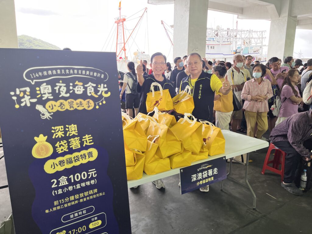 每年6至8月為小卷盛產季,此時的小卷甜脆彈牙,是許多老饕心中的夏日限定海味,其中深澳漁港為全台重要的小卷卸貨港之一,而瑞芳區漁會為推廣深澳在地漁產,今年度辦理深澳小卷季,瑞芳區漁會總幹事黃志明表示,為讓民眾認識及品嚐深澳漁港尚青的小卷,本次深澳小卷季在深澳漁港設置2層樓高的粉萌小卷充氣裝置藝術,並於每日晚間6點30分至9點,每30分鐘展演一場、每場5分鐘的光雕水舞秀,讓漁港披上不同以往的風貌,更辦理深澳小卷市集,有吃有玩又有買,轉眼間深澳小卷季來到最後一週,本週六日一樣有限量小卷福袋100元(福袋內容為1盒小卷1盒咪咪卷)每日都會有2時段供民眾購買,每個時段都是限量100份;「鱻味食光站」免費供應鮮美小卷或在地漁產料理品嚐,每日有3時段,每個時段都是200份;另外大小朋友都很喜愛港邊手作坊-DIY皮雕、拓印環保袋及食魚教育等活動,每場次30人,每日上午11點就可至服務台報名,額滿為止,前幾場沒有參與到的民眾要把握最後一週。歡迎闔家大小一起來深澳漁港,享受夏日假期。