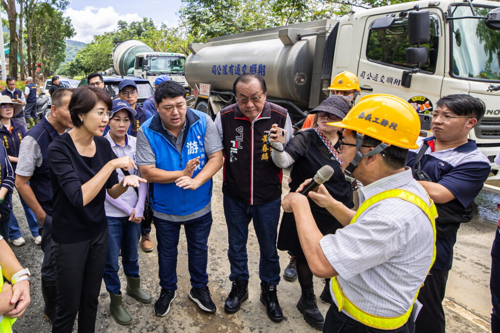 另外,台16線集集水里段11.6K處31日晚間邊坡崩坍走山,土石泥流阻斷雙向四線道,公路局連夜搶通,許縣長與游立委特地前往了解情形,現場已於1日中午恢復兩條線道通車。