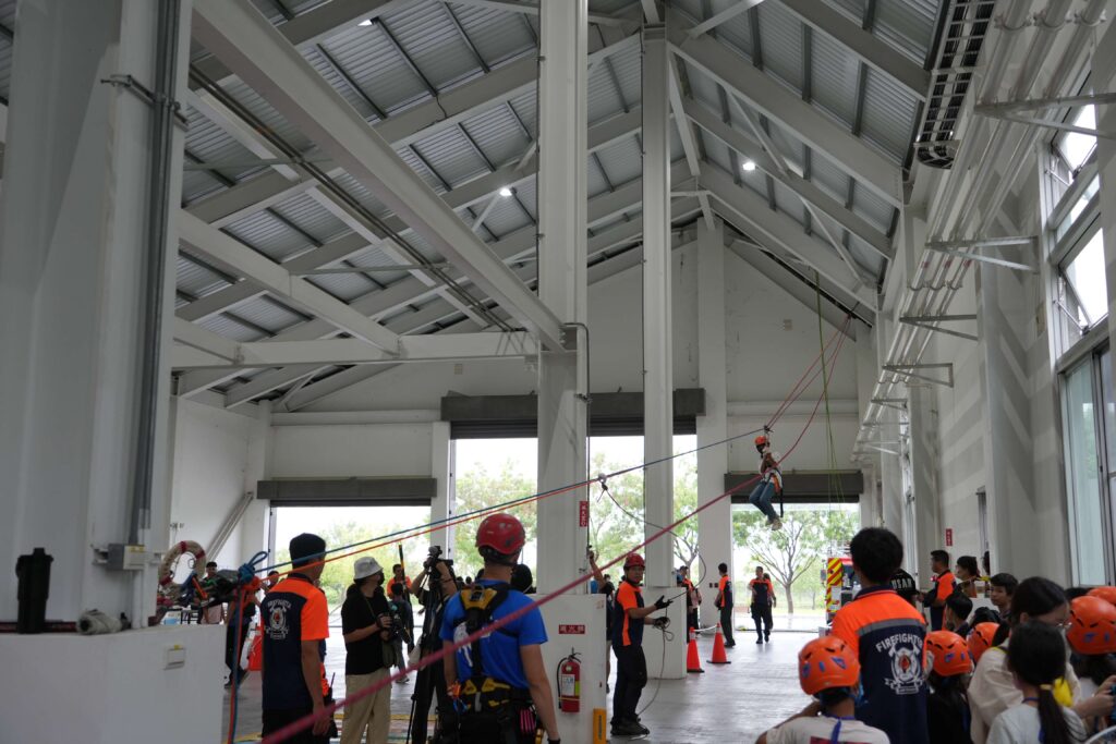 小小消防員暑假營共設置地震災害VR體驗、防災大富翁、射水體驗、消防衣著裝體驗、繩索斜降冒險體驗、CPR操作教學、反毒防詐互動遊戲及救溺技巧模擬等關卡。在消防員與志工協助下,小朋友實際操作防火、救溺、逃生、救人等技巧,樂當一日打火救災英雄。