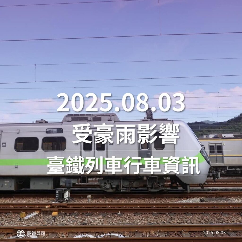 台鐵提醒旅客,外出前務必提前確認天氣情形,更多詳細班次資訊請參考本公司官網及台鐵e訂通 APP,或洽現場站務人員,造成不便,敬請您的見諒。