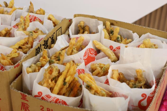 縣長夫人表示,這道古早味客家小吃相當厲害,結合芋頭、地瓜、南瓜及酥炸外皮的層次口感,最重要的是加入了九層塔畫龍點睛,平凡的食材注入了獨一無二的香味,而客家婆菜如今已少見,邀請愛吃炸物的饕客一定要來品嘗最道地的客家小吃。