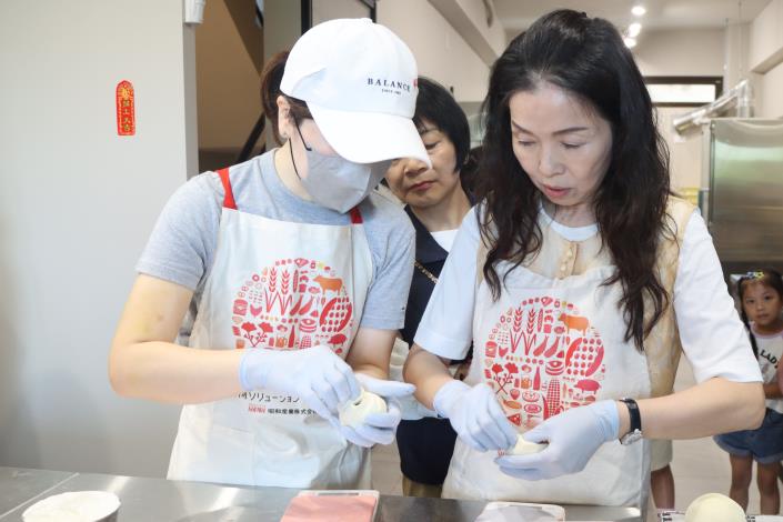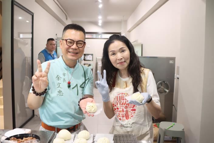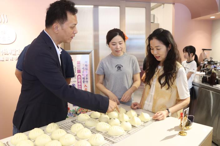 夫人陳美琦不僅品嘗剝皮辣椒肉包、雙蔥肉包、客家豬籠肉包以及滷肉包,更親自下場,體驗捏麵糰製作饅頭的過程,與店家夥伴齊心協力揉出熱騰騰的麵香,感受「手作」背後的堅持與溫度,感受濃厚的地方特色與用心精神,期盼未來有更多人看見這份努力,也鼓勵年輕創業者勇敢逐夢,在土地深耕,綻放光芒。