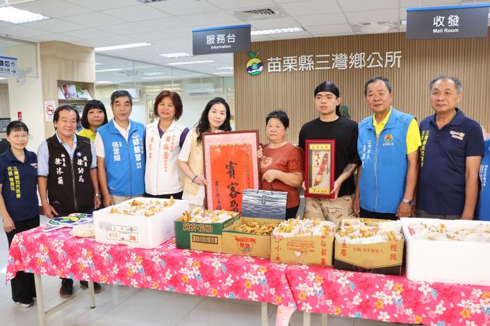 隨後,夫人趕往苗栗市阿梅姐日常手作·味自慢糧倉頒贈中堂恭賀,店家以苗栗在地食材與純手工製作包子、饅頭,還有鹹湯圓、紅豆饅頭、紫米飯糰等客家小料理,多元豐富,獲得500碗評審、食材產地工作者顧瑋青睞,給予好評。店家分享,最初因在家照顧孩子而萌生興趣,從網路販售起步,直到去年才設立實體門市從沒想過興趣做出來的商品能得獎,更沒想到能走到今天。