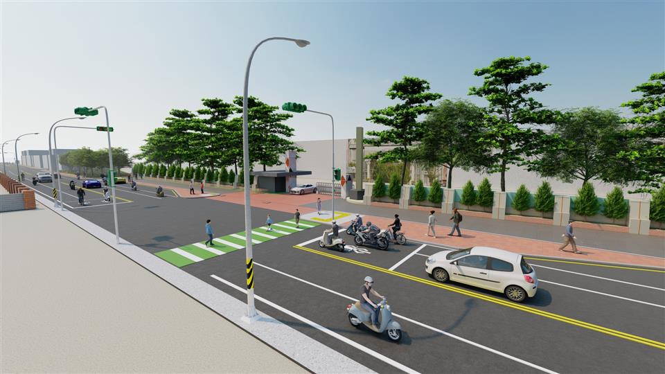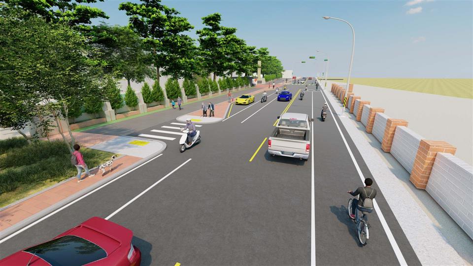 王縣長表示,這段工程自美寮路二段357號附近(美寮夜市)開始,沿美寮路向東延伸,途經彰11線(柑竹路)、縣道135線東路,至終點彰新路三段,總長度約2,326公尺,設計上將路幅拓寬至13公尺,並導入汽、機車分流規劃,有效提升通行效率並降低事故風險。考量沿線學校通行安全,特別規劃設置通學步道,全長達860公尺,並針對瓶頸地段進行線形與視距優化,全面提升道路安全性與舒適性。