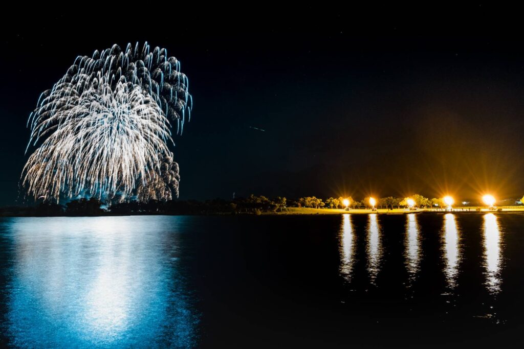 活動由「弦音雅集重奏團」以溫潤悠揚的弦樂揭開序幕,隨後由「陳氏姊妹」以渾厚而動人的嗓音,演唱多首耳熟能詳的經典曲目,為現場注入溫暖而深情的音樂氛圍。熱氣球球籃隨著音樂節奏閃爍火光,與煙火在湖畔交織出動人的光影饗宴,璀璨煙火綻放的瞬間,為這場受天候影響卻依舊精彩的光雕音樂會畫下最絢爛的句點。