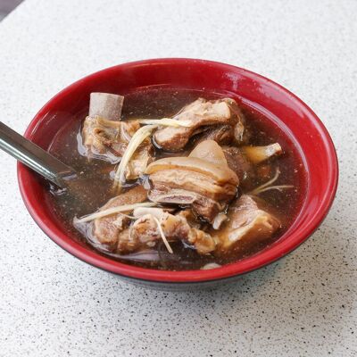 從下午營業至凌晨,是許多在地人享用晚餐和宵夜的好去處。其湯品使用陶製九母鍋熬煮,包含當歸、川芎、熟地、枸杞等藥材,湯頭清爽回甘。藥燉肋排湯是熱門品項,建議搭配店家自製的豆腐乳醬汁,帶出鹹香滋味。米血糕醬香濃郁、質樸美味,值得一試。湯品除了排骨,也提供皇帝雞、羊肉等不同選擇,可免費續湯。