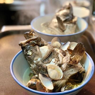 開業逾20年,現由第二代接手,新舊融合的空間洋溢著溫馨氛圍。販售各式魚料理小吃,其中魚湯湯底使用虱目魚、番茄、蛤蜊等食材熬煮,呈現自然風味。鱸魚為活水養殖,肉質細嫩,以清蒸突顯其鮮美。柴燒麥芽豬腳為另一招牌,豬腳經川燙後,加入麥芽糖和醬料燉煮入味,帶膠質口感,不容錯過。建議提早抵達,避免食物售罄。
