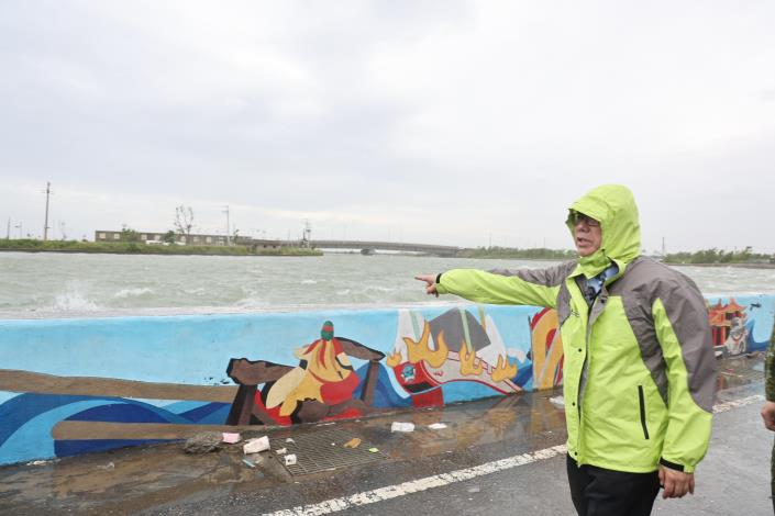 黃偉哲強調,希望這次楊柳颱風,大家都能夠平安,也指示水利局等相關單位,颱風過後要再評估加強當地防止海水倒灌的堤防等設施,保護加強漁港周邊的社區安全。