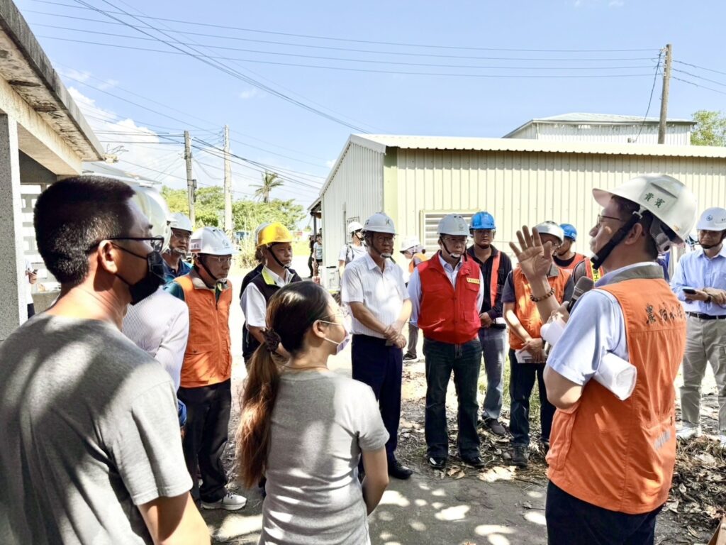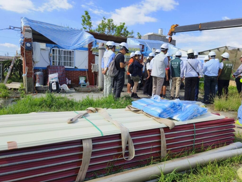 行政院雲嘉南災後復原前進指揮所指揮官陳金德,今(14)日率隊前往臺南安南區與下營區,現勘兩處弱勢家戶修繕案場,慰問受災居民並為現場施工團隊打氣。他強調,將力求在最短時間內完成修繕,降低居民生活不便。