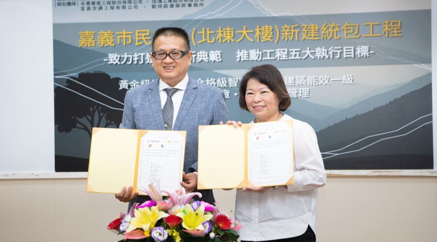 嘉義市政府推動「市民中心北棟大樓新建統包工程」,歷經近二十年的規劃與多次招標流標,終於在114年5月9日順利決標,並於今(15)日舉行簽約典禮。嘉義市長黃敏惠與統包團隊—永青營造股份有限公司董事長曾國進共同簽署契約,宣示全力推動決心,為嘉義市打造結合綠建築、智慧建築、永續設計與高效服務的新一代市政核心,成為智慧、永續與人本的新地標。