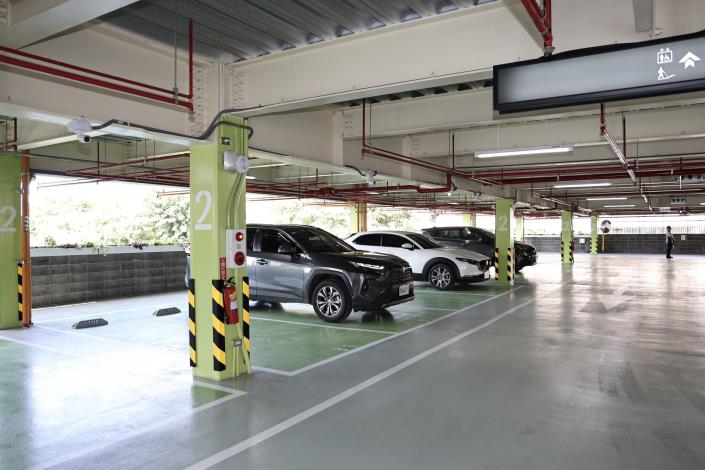 交通局指出,停車場以綠色外觀及植栽點綴,與南側陽光公園相呼應,活動中心及托嬰中心則設置於南側臨接公園,讓民眾能同時享用公園之景觀及設施,使用上更為舒適。目前停車場已由委外經營廠商導入智慧停車管理系統,有效減少民眾等候、尋找停車位的時間,提升停車場使用效益與服務品質,歡迎民眾多加利用。