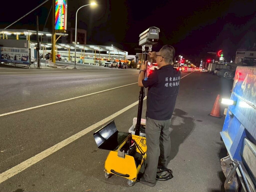 為了提升稽查效率並有效嚇阻不法,屏東縣環保局持續與警察局及監理站合作,展開「環警監聯合稽查」。同時,也導入科技執法工具,針對機動車輛噪音,透過「聲音照相」科技執法系統,在易有高噪音車出沒的路段進行全天候監控。若車輛行經偵測點時分貝值超出管制規範(限速50公里以下為86分貝、限速超過50至70公里為90分貝),系統將自動錄影、拍照並標記超標車輛,作為後續告發的有力證據。