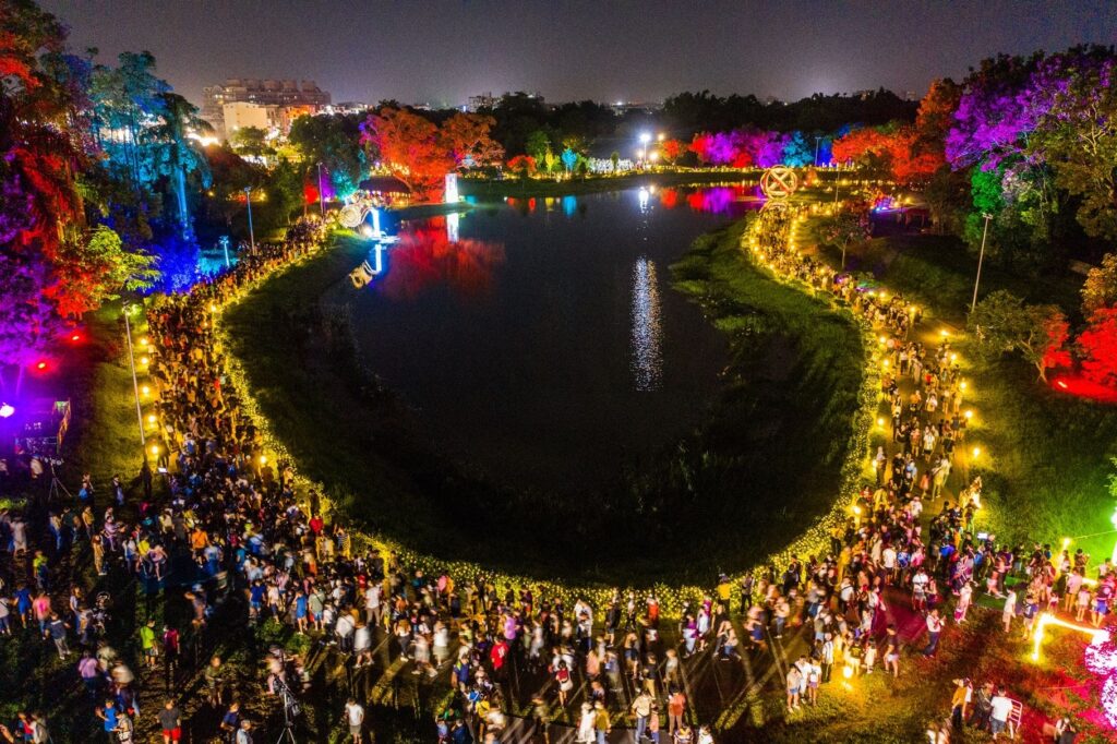 嘉義市政府觀光新聞處處長張婉芬表示,今年策展核心為-「在光影中探索自己」。藉由這個主題,我們將湖岸、森林、花園等自然地景轉化為一幕幕情境式的光影舞台,巧妙打造兔子洞、牡蠣寶寶、奇幻花園等主題場景,還有湖面絕美的多層次光圈月亮,以及超巨型 9 米愛麗絲造型氣偶及經典角色妙妙貓造型燈箱,保證精采可期。邀請大家在中秋佳節期間,與家人朋友一起享受這段光影旅程,不只能團圓賞月,更能「走入夢境」,與自己對話, 重新喚醒內心的好奇與勇氣,感受屬於嘉義市的奇幻夜晚與藝術魅力。