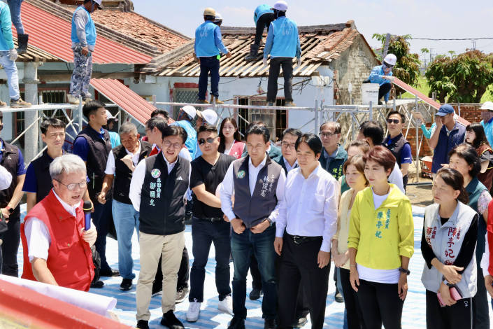 賴清德總統昨(23)日上午前往臺南關心災區復原及房舍修繕情形時強調,中央會和地方密切合作,全力協助受災民眾,並肯定民間力量的投入,共同推動災後重建。並表示,此次中央更特別編列6百億元預算協助災後重建,期盼在颱風後建立機制,提升臺南、嘉義及南部縣市面對氣候變遷挑戰的能力與韌性。