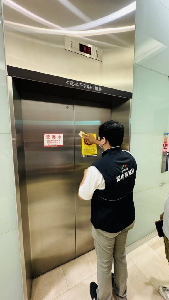 都發局說明,經查事故昇降設備使用許可證有效期限至115年1月12日止,近一年均有保養紀錄上傳,尚符規定。保養廠商研判,因機房過熱造成控制系統異常,而啟動自動安全機制,鎖機暫停運作。目前已停機檢修中,都發局業已張貼勒令停止使用告示,待檢修後將委託檢查機構辦理複查。