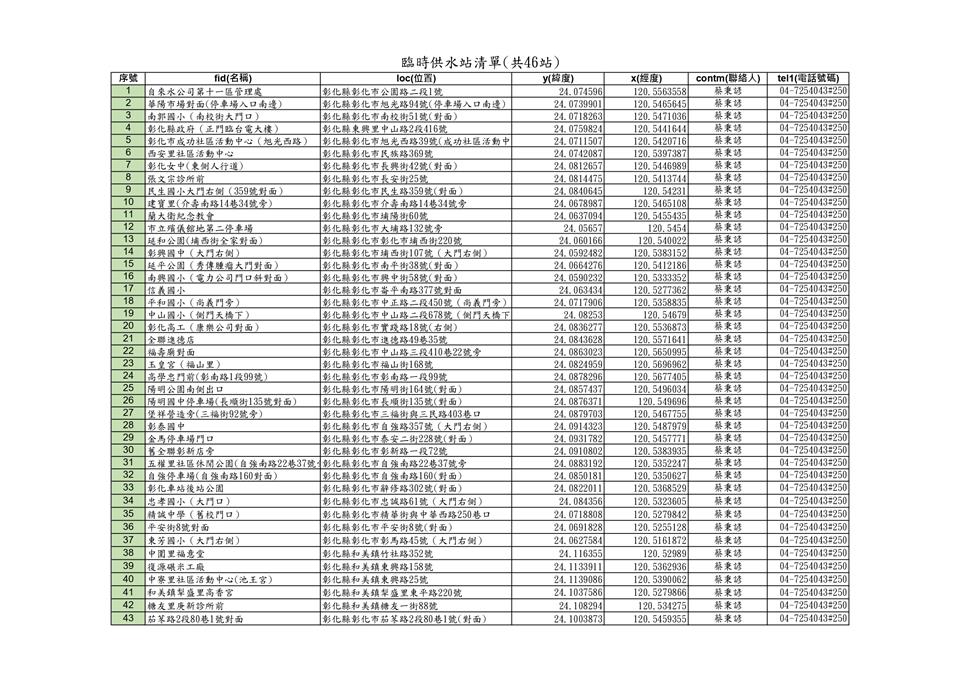 本次除停水區域及水壓降低區域外,其餘地區不受影響供水。惟停水區域於復水後,地勢較高地區、管線末端及大樓之地區,水壓需一段時間方可恢復正常,尚請見諒。相關停、復水資訊及臨時供水站位置,請至本公司停水公告查詢系統查詢 https://web.water.gov.tw/wateroff/ 本公司亦會逐戶發放停水通知單,如有疑問請電洽本處彰化服務所電話(04)7238015。