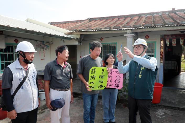 黃偉哲指出,災後處理事務繁雜,現階段除了房屋修繕及慰助金發放,還有農業損失補助,目前第一批超過800萬元的補助款已撥付至受災農戶,協助農民儘早恢復生產。他強調,市府將持續投入資源與人力,全力加速災後復原腳步,讓居民早日重建正常生活。