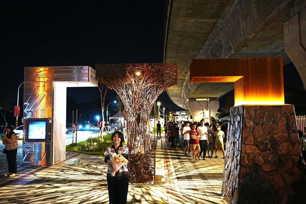周縣長表示,縣府接管後發現橋面正下方植栽因缺乏日照導致生長不佳,自上任後積極改善橋下鋪面設施、植被生長、更增設燈具照明,打造煥然一新的橋下廊道人行空間,成為鄉親運動、散步的休憩點,同時將人行道融入鐵道元素、建置「貓洞」裝置藝術等,並在空間活化後導入活動,此次辦理屏花漾市集初試啼聲,未來將制度性的規劃活動,與附近夜市、社區發展共融共好。