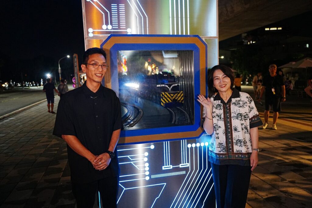 縣府工務處表示,此次工程中建置裝置藝術洞見光影,採3座墩柱視覺錯位設計,不僅將「貓洞」造型重現,也融入鐵路及縣政推動的科技產業作為設計元素,各墩柱分飾著發展過程中過去、蛻變、未來的語彙。