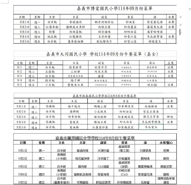 黃敏惠市長表示,提供營養健康的學校午餐一直是我們追求的目標,安全無虞更是重中之重的原則。嘉義市國中小目前均透過自設廚房自辦午餐,並訂定學校午餐食材採購契約要求業者提供符合三章一Q的新鮮食材,目前尚無廠商針對9月份菜單反映豬肉等食材供應問題,市府亦持續掌握供應情形並做適當的菜單調整。此外,嘉義市也積極提升相關食材的安全性規範,自114學年度第1學期起學校午餐使用生鮮豬肉及禽肉類食材,皆須優先採用CAS驗證產品,藉以提升學校午餐食材的安全性及三章驗證食材的使用率,做好源頭管理,共同把關師生食的安全。