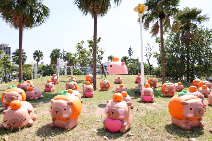 本次活動最大亮點,莫過於為此次活動全新設計,首次登陸安平漁人碼頭的12米高的「卡比胖拉」水上氣偶,以經典慵懶泡湯造型現身,手抱在地特產「青皮椪柑」,搭配周邊水域環境,營造出療癒人心的可愛氛圍。入夜後更精采,隨著音樂及燈光變化,卡比胖拉泡湯情境的燈光秀夢幻登場,展現出與白天截然不同的視覺魅力。燈光秀展演時間為平日18:00至20:00、假日18:00至21:00,每半小時演出一次,每次約三分鐘,讓觀眾沉浸在卡比胖拉的萌系世界裡,感受片刻的溫暖與療癒。