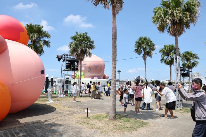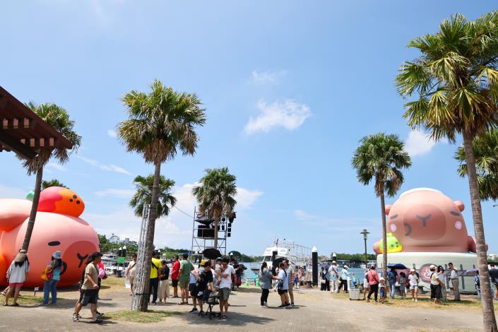 由台南市政府觀光旅遊局主辦的「2025卡比胖拉出沒注意!台南萌翻天」活動今(13)日起至10月19日在安平漁人碼頭周邊正式登場。上午開幕後即吸引眾多遊客進場拍照,台南市長黃偉哲誠摯邀請國人在教師節、中秋節及雙十節連假期間前來台南共度美好時光。