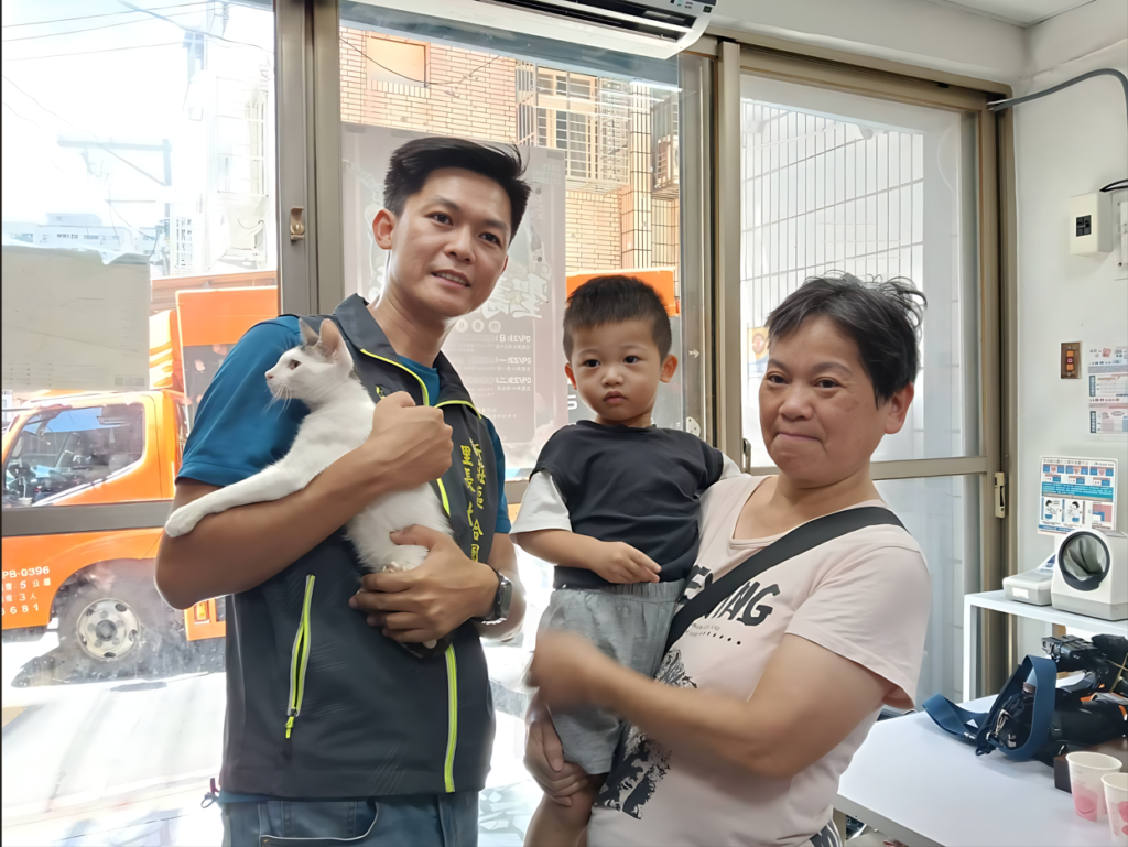 林永憲里長養過兩狗一貓,談及過去的飼養經驗,他笑著回憶,以前寵物貓偶爾會因撒嬌或玩耍而抓傷他,但帶來許多陪伴與歡樂,也是這些互動和經歷才讓他更加堅定推廣動保理念。即使現在沒再養寵物,里長處理公務之餘,也不忘關懷身邊的毛寶貝。近幾年就接過20至30件通報流浪貓問題,其中一次經歷令他印象深刻:一隻浪貓受困於空屋中,因屋內空間狹窄且複雜,里民和志工花了一番工夫才將小貓安全救出,避免意外發生。林里長亦多次主動向八里動物之家借用誘貓籠,協助捕捉與安置,展現對動物照顧的用心。