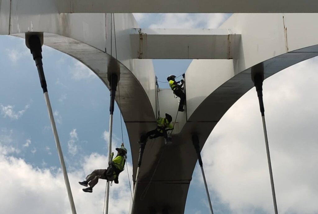 高空蜘蛛人守護新月橋橋梁安全 呼籲民眾配合施工管制