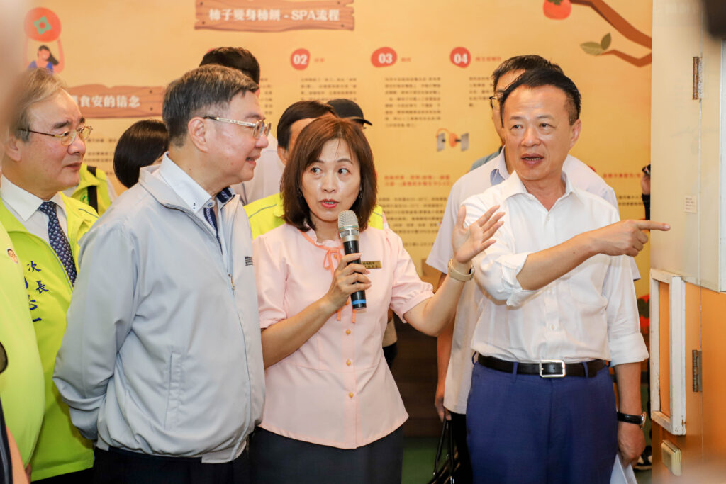 卓院長也參觀「柿餅SPA工坊」,了解番路鄉農會導入的現代化製程,以「室內冷熱風恆溫乾燥技術」取代傳統日曬方式,搭配人工翻動與按摩,使果實展現金黃色澤與Q彈口感,並形成獨特風味。