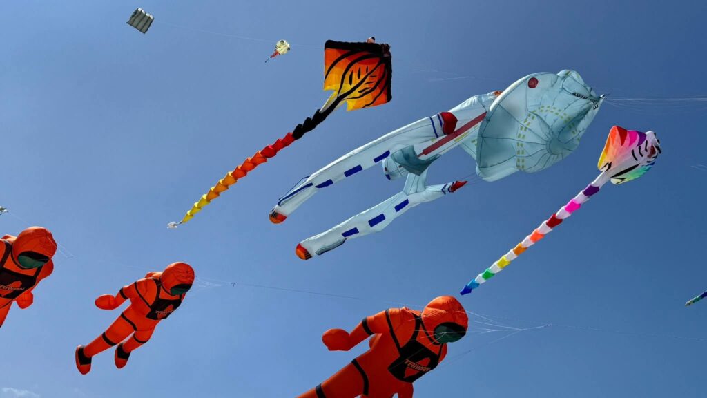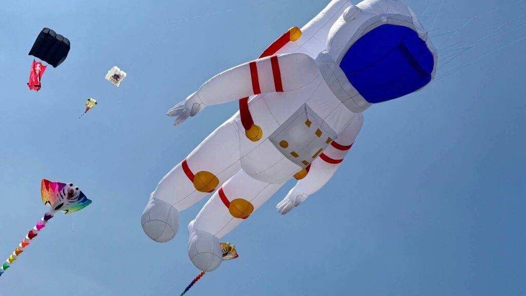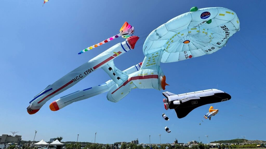 今日記者會率先開箱法國15米企業號星艦風箏,由亞洲國際風箏聯合會與台灣專業隊伍升空操演,並搭配18米太空梭、多款太空人與外星人風箏亮相,提前展現「太空對決」的震撼氣勢,現場民眾驚呼連連。活動期間竹市吉祥物「竹市特派員皮卡」也將化身太空人與旅客熱情互動,邀請大家一起放風箏、拍照打卡。