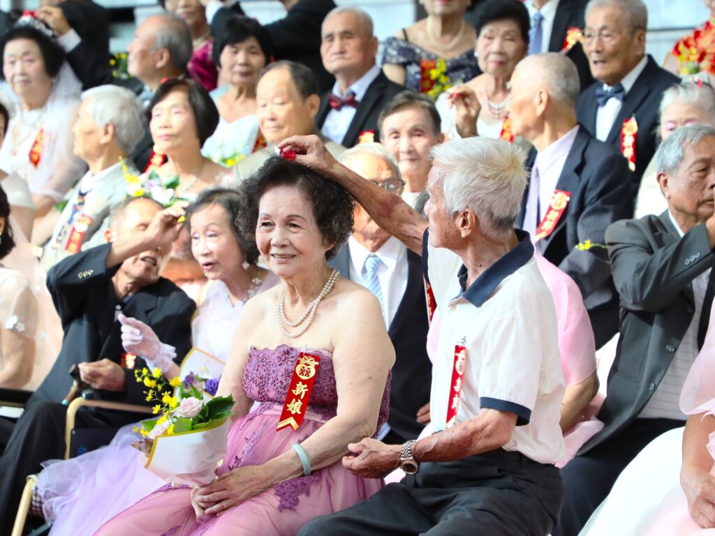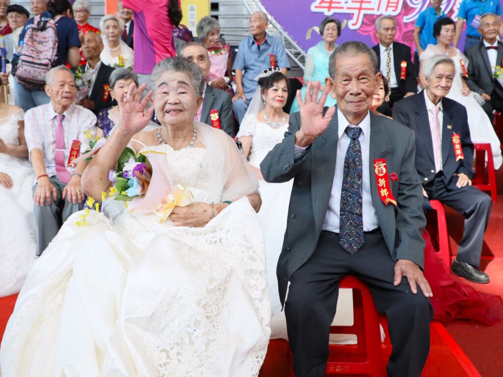 現場除了見證110對長輩珍惜婚姻、相守一生的深厚情感,為現代年輕夫妻樹立了愛與承諾的典範。同時,活動也一圓許多婚齡逾半世紀、因20、30年代時代背景無法身穿白紗出嫁的阿嬤們的心願,讓她們披上夢想中的婚紗,留下最動人的回憶。儀式中,阿公親手為阿嬤戴上象徵幸福的新娘頭花,寓意開枝散葉、子孫綿延,場面溫馨感人。
