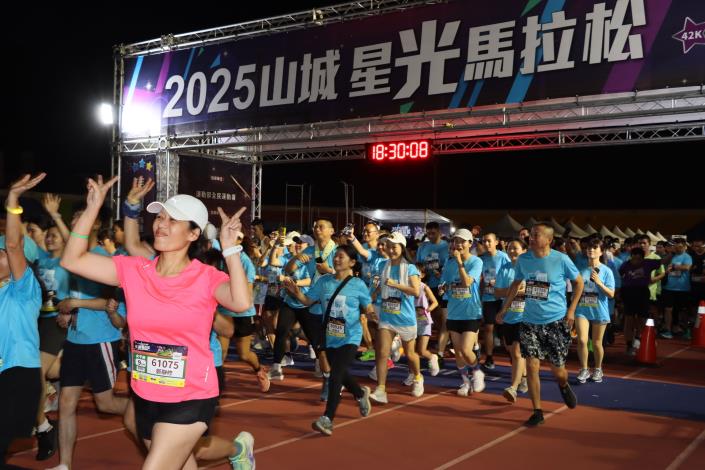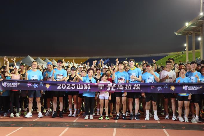 「2025山城星光馬拉松」於今(27)日晚間盛大展開,本次賽事由苗栗縣政府與苗栗縣農會共同主辦,並由苗栗縣路跑協會承辦,吸引全國各地超過5,000名跑友齊聚苗栗縣立體育場出發,縣長鍾東錦與立委夫人詹美娟、議員孫素娥、曾美露、廖秀紅、許櫻萍、苗栗市長余文忠、教育處長葉芯慧及農業處長陳樹義等為選手加油打氣。夜幕下的山城因跑者的腳步而充滿活力,星光與燈火交織成壯麗畫面,讓人流連忘返。