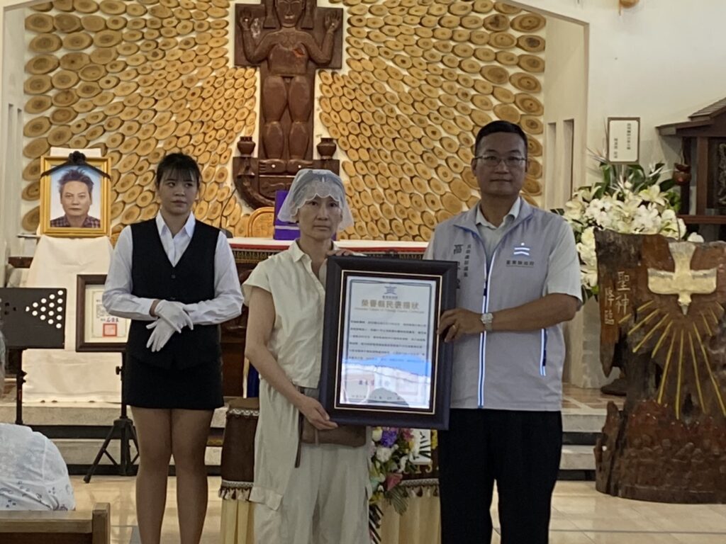 已故徐超斌醫師的追思告別彌撒於今(30)日上午在達仁鄉土坂天主堂舉行,臺東縣政府由民政處副處長高忠雲代表縣長饒慶鈴,將「榮譽縣民褒揚狀」親手頒贈予徐醫師的夫人,以表達縣民感念徐醫師長年投身偏鄉醫療、無私奉獻的精神。