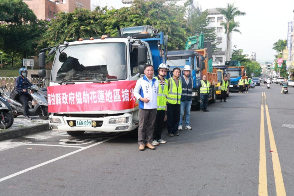 縣府工務處長張弘岳表示,中央應變中心及花蓮縣政府提出救災需求後,南投縣組成救災隊伍,由工務處技正葉朝棋領隊,派出的機具將進駐花蓮,協助災民。