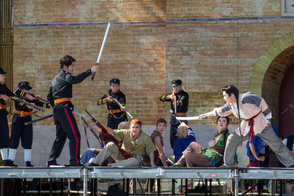 舞台以北門城牆為次舞台,並特別邀請跨界火舞團隊「即將成真火舞團」合作,結合火舞與特效設計,營造壯闊而沉浸的氛圍,讓觀眾彷彿穿越時空,見證百年前的風雲激盪。