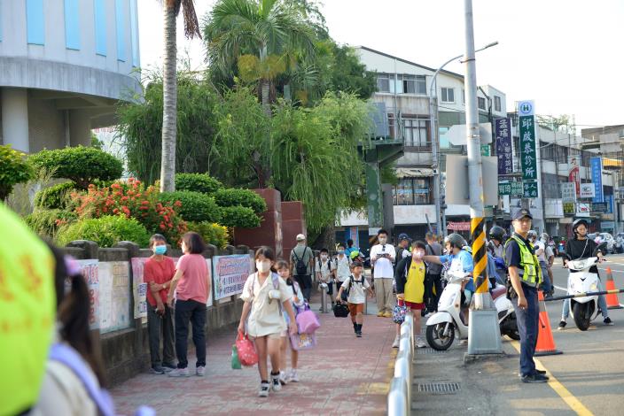 苗栗縣重視學童安全!鍾東錦視察苗栗市建功國小護童勤務