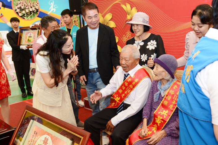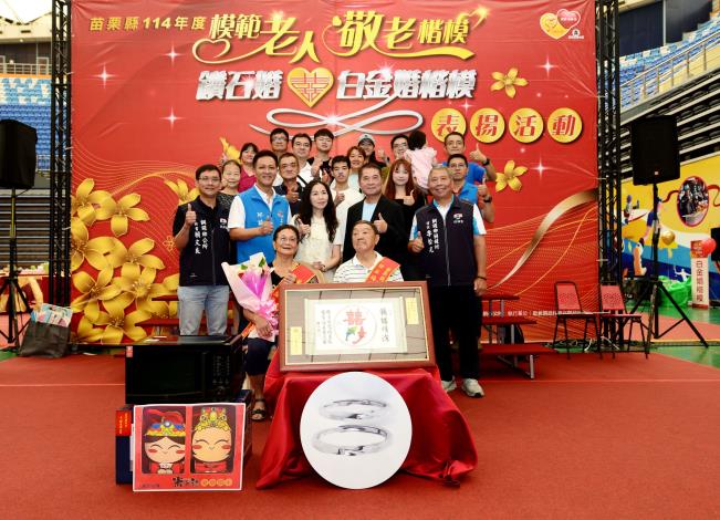 苗栗縣表揚白金婚和鑽石婚楷模 縣長鍾東錦獻唱「愛你一萬年」祝福