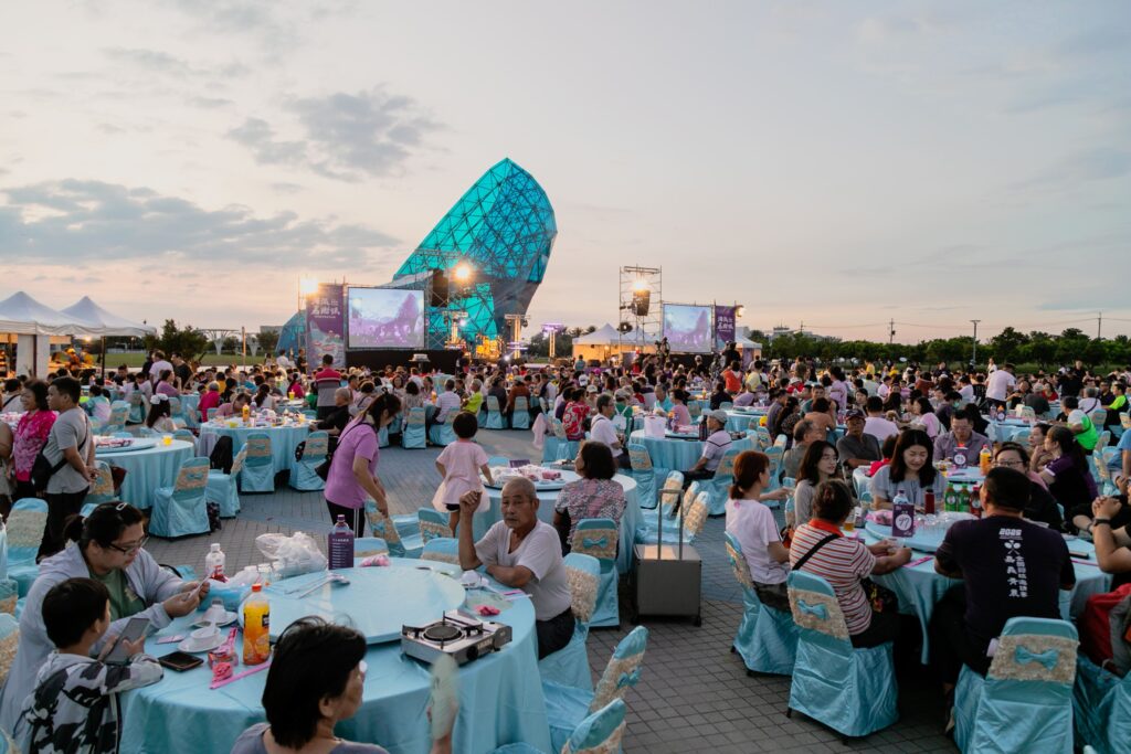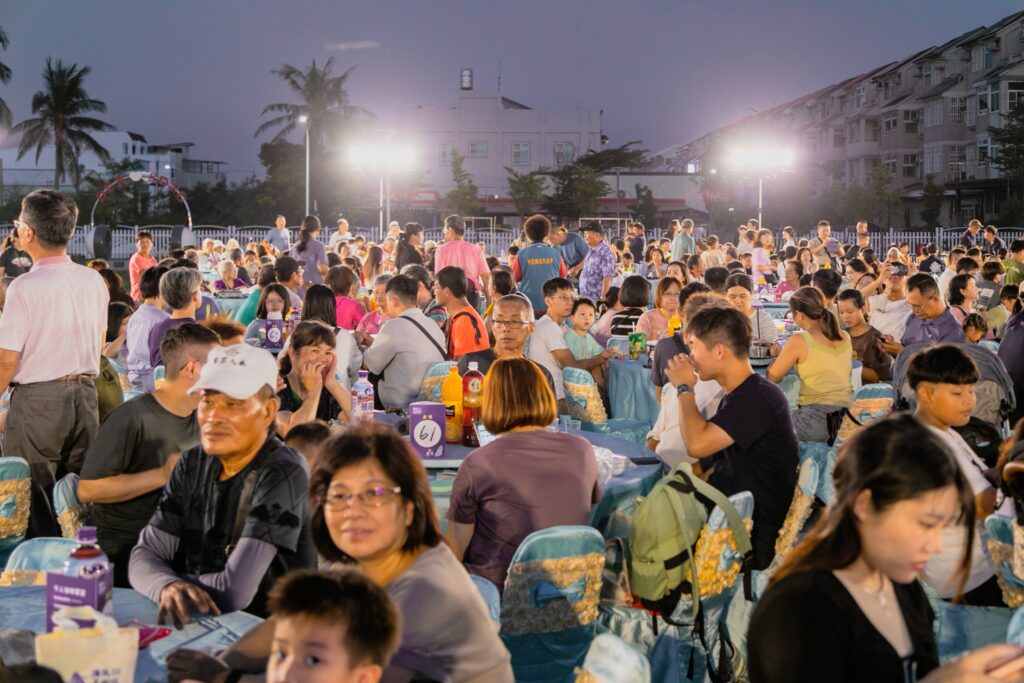 翁章梁說,今天原本預定100桌,但報名踴躍秒殺,因此加開50桌,席開150桌,來自全國各地的民眾呼朋引伴到布袋聚餐,明年請大家儘快訂桌,才能享受如此美好、美味的氣氛。