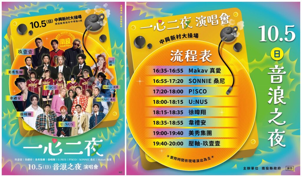 縣府表示,「經典之夜」融合了世代情感與地方文化,讓音樂成為連結茶博會與全民參與的最佳媒介。10月5日將由「音浪之夜」接棒,持續以超強卡司帶給青年族群熱力四射的音樂盛宴,邀請民眾把握週末假期,一同來南投享受戶外演唱會的樂趣。
