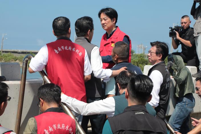 賴清德總統聽取水利復建簡報後勉勵市府同仁,維護民眾生命財產安全是政府的首要責任。台灣常受颱風、地震及氣候異常影響,市府相關單位應持續落實清淤、防汛等例行工作,這與醫師同樣是「救人」的工作,能讓市民獲得更完善的安全保障。總統並於巡視民宅過程中致贈中秋禮盒,向居民表達關懷與祝福。