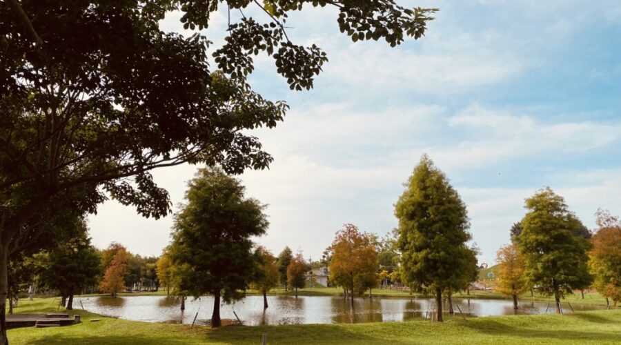 秋意漸濃!后里環保公園落羽松、黃波斯交織如畫