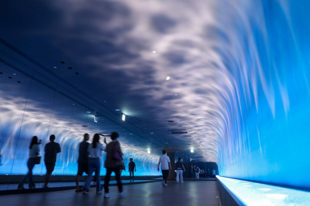 觀旅局表示,台中海洋館全國首創六大特色展區,包括以蓮花造型展示的「台中河川展區」;「室內濕地體驗潮汐區」;全台規模最大、物種最豐富的「水母主題展區」;「開放式企鵝展示空間」,可從下方仰望企鵝悠游姿態;360度全透明「鯊魚虛實展示缸」;以精品風格打造的「璀璨珊瑚展示區」,全面呈現海洋生態之美與教育價值。