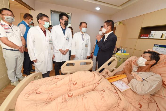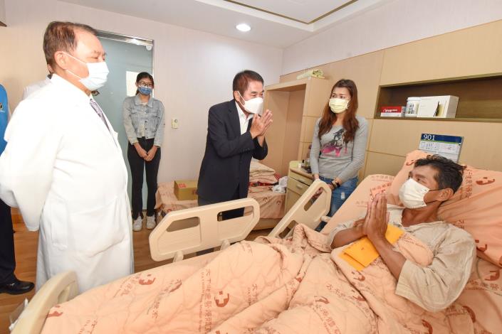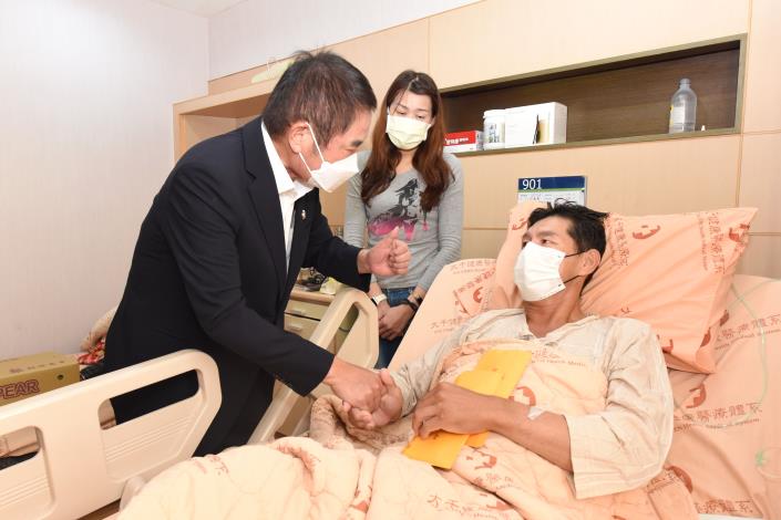 鍾東錦慰問苗栗隨機砍人案見義勇為的林先生 林妻:救人像是老天指派的任務