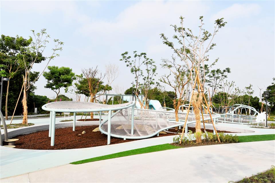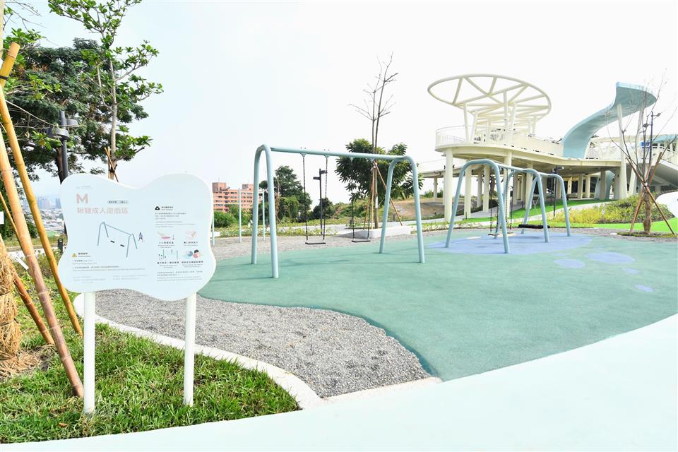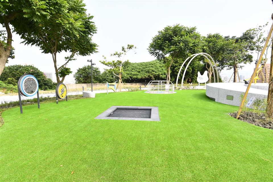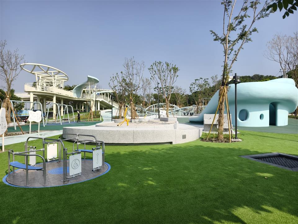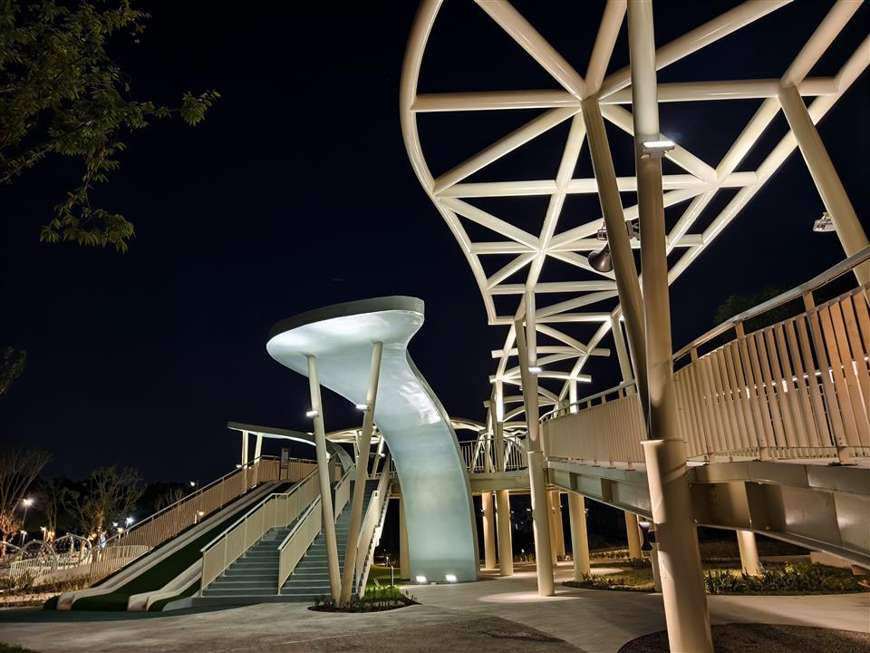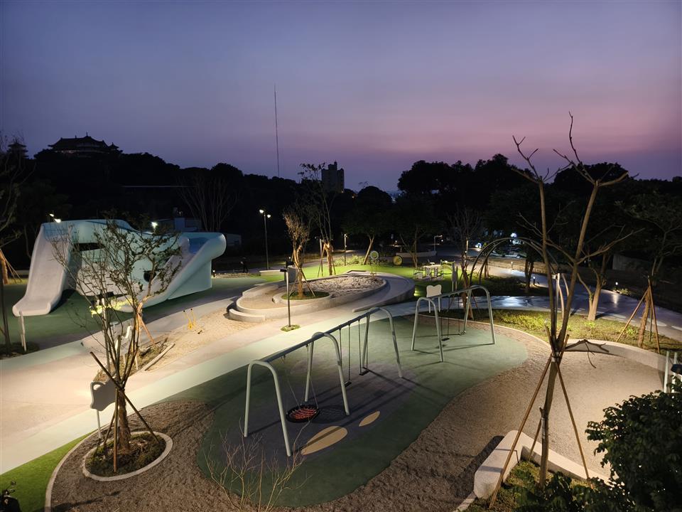 場域設計不僅考量遊憩功能,更導入多項貼心服務與永續設計。園區內設置了休憩座椅、躺椅、景觀涼亭、造型廁所以及無障礙設施。遊戲場種植多達75種原生種喬木、灌木,並搭配解說設施,使其兼具環境教育功能,猶如一座植物園。夜間則透過景觀燈光設計,呈現出與白天截然不同的迷人風貌。