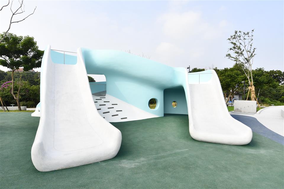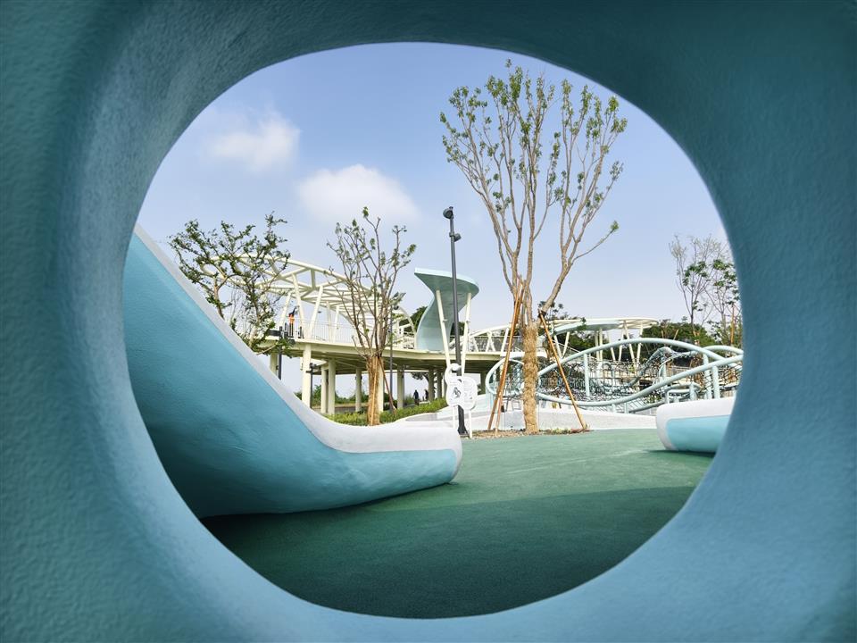 JHStudio建築師何震寰表示,感謝設研院整合城市美學以及王縣長縣府團隊通力支持,讓設計能量可以發揮到淋漓盡致,遊具除強調共融,同時多為客製化設施,由國內造船產業及國外專業遊具製造廠商等多家廠商共同促成,打造專業又遊戲感十足的公園。