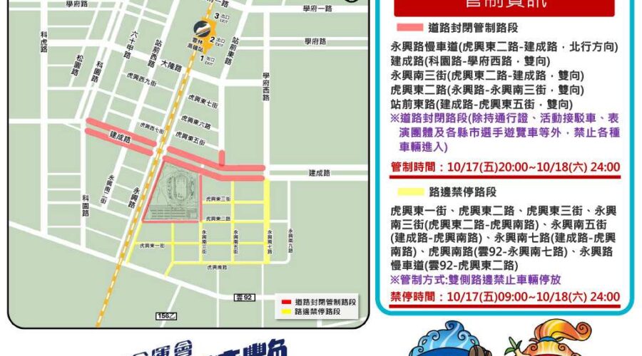 - 永興路、永興南三街、虎興東二路、建成路(學府西路至科園路段)將封閉通行。