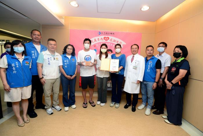 苗栗見義勇為林先生出院 副縣長邱俐俐頒感謝狀表揚他的英勇行為