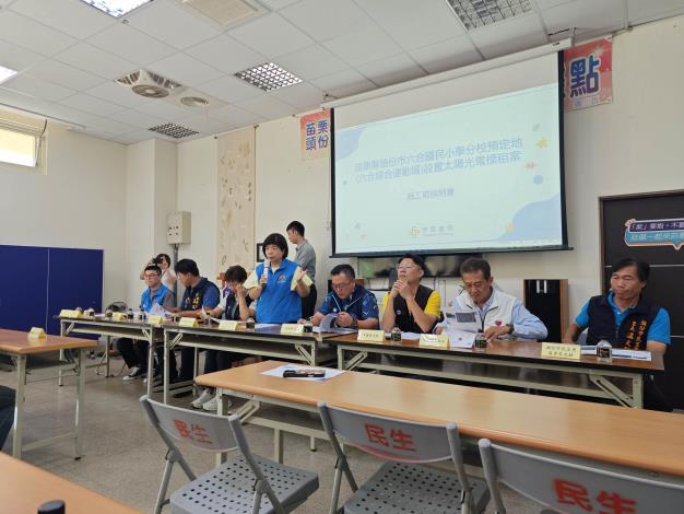 中租公司說明本案場預計裝設之太陽能模組係採防眩光模組,並承諾升壓設備站預計採用鐵網隔離並安裝隔音設施避免噪音影響鄰近住戶。工商處詹彩蘋處長強調,會議中提出的建議事項,亦會逐一落實,讓六合運動場光電案不僅能創造穩定綠電收益,