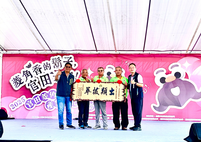 2025官田菱角藝術節於今(18)日在西拉雅國家風景區盛大展開,活動由隆田國小太鼓術隊、官田國小祥獅獻瑞及官田區農會高齡班舞動銀髮熱舞熱鬧揭幕,並舉行模範農民表揚儀式,隨後還有水管阿民、狗屎運爵士大樂團、樣爸森友會與劍玉師小螺絲接連演出。另活動現場連續兩天提供 600份香氣四溢菱角排骨湯供民眾免費試吃,讓大家品味在地美味,同時也能感受官田豐收喜悅。現場並舉辦趣味十足「菱角挑戰賽」,邀請民眾同樂。此外,活動亦設有「菱角特賣會」,集結當季新鮮菱角與各式菱角加工產品,讓參與民眾滿載而歸。